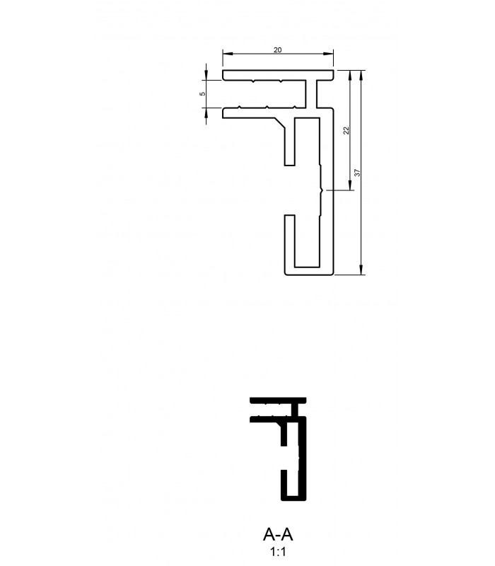 - DECKENABHÄNGUNG einseitig, Aluschiene oben /unten flach, Rundkeder