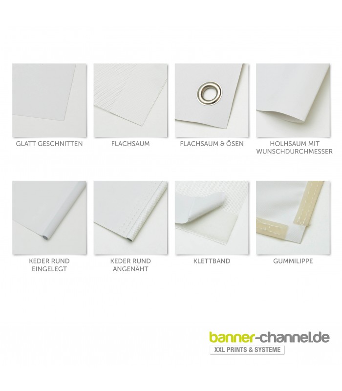 Bevorzugen Sie die Aufhängung Ihres Demoplakats im Wunschformat unter Verwendung eines praktischen und eleganten 2-Kanal-Schienensystems oder eines Banner-Lifters, weil sie häufige Motivwechsel beabsichtigen, empfiehlt sich unsere Konfektionierung mit einem Rundkeder. Dieser wird in den Schienenkanal eingezogen und gewährleistet eine glatte, gleichmäßige und damit effektvolle Präsentation ihres Indoor-Demoplakats.