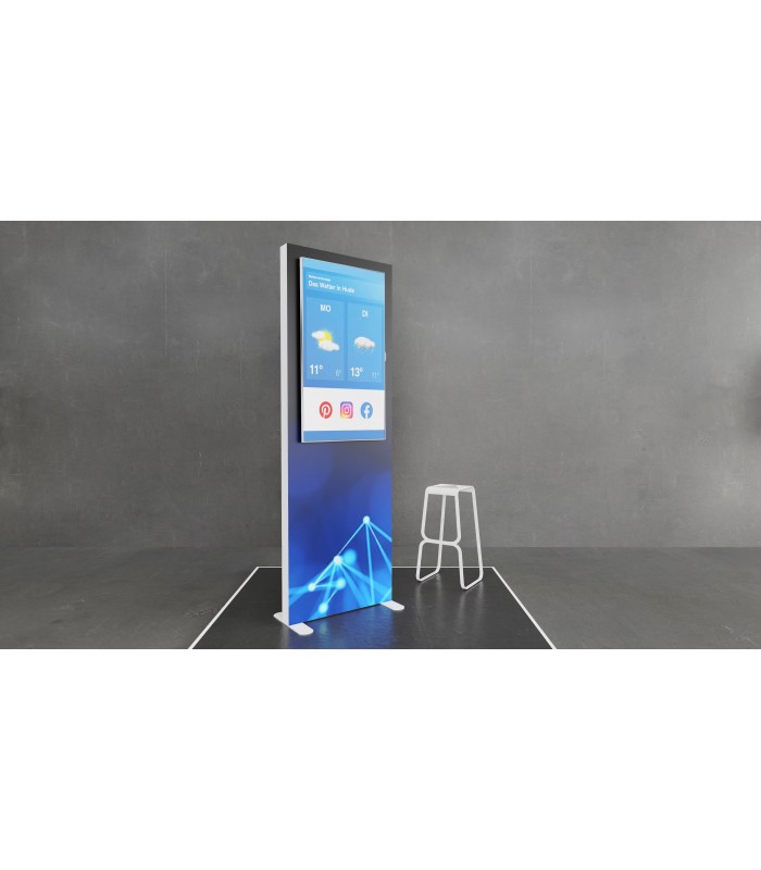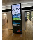 Stellwand freistehend aus Aluprofilen eloxiert // beidseitig bespannt und bedruckt // beidseitige LED-Hinterleuchtung wählbar
