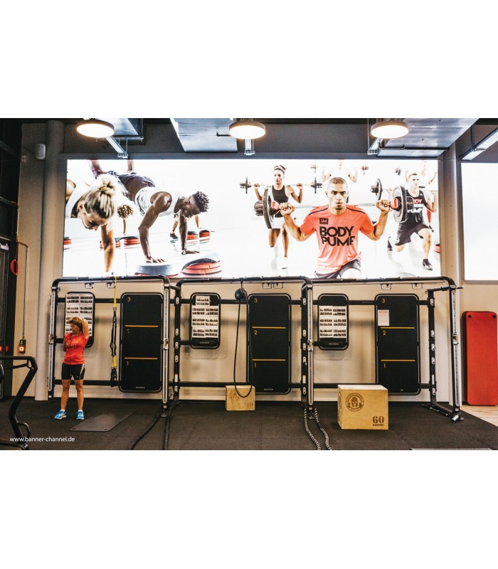 Der Print wird mit einer Gummilippe in den Rahmen eingeschoben.Wandbilder von kleinerer Größe bis hinzu XXL Formaten, zum Beispiel 500 cm x 200 cm lassen sich problemlos realisieren. Per Seiteneinstrahlung erreichen wir bei hellen Motiven bis zu einer Druckbreite von 200 cm eine homogene Ausleuchtung.Bei größeren Druckbreiten empfehlen wir unseren Rahmen mit Flächen LEDs. Formate bei denen die kurzen Strecken über 200 cm lang sein sollen, fragen Sie diese bitte individuell bei uns an - wir unterbreiten Ihnen gerne ein kostengünstiges Angebot. Die Profile werden über Eckverbinder miteinander verbunden. Die LEDs sind bereits an den Profilen vormontiert. Bei größeren Formaten wird eine zusätzliche Strebe eingesetzt. Um einen rückseitigen Lichtaustrittzu vermeiden, wird wandseitig ein weißer Blockstoff mit Gummilippe eingesetzt. Nach der Montage des Rahmens mit Wandhalterungen kann der Backlitstoff eingesetzt werden. Ein Motivwechsel ist unkompliziert und kostengünstig.