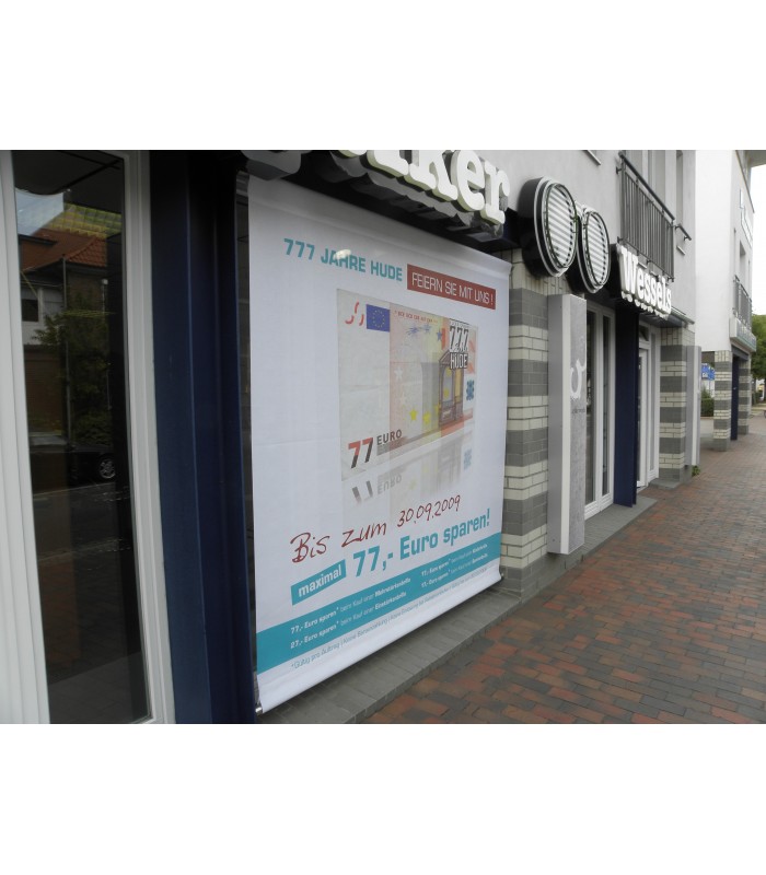 Gerüstbanner, Spannbanner, Banner an Aussen- und Innenwänden, vor und hinter Schaufenstern, als Bühnenbanner (Bandbanner), auf Baustellen, an Bauzäunen etc. Formate frei wählbar.