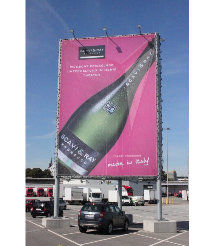 MESH Netzgitter, ca. 330 gr., B1 zertifiziertes, gelochtes Planenmaterial. Im Vergleich zur PVC Plane reduziert die gelochte Oberfläche die Windangriffsfläche um ca. 30%. Trotz der geringeren Oberfläche erzeugt das Material sehr gute Farbergebnisse.