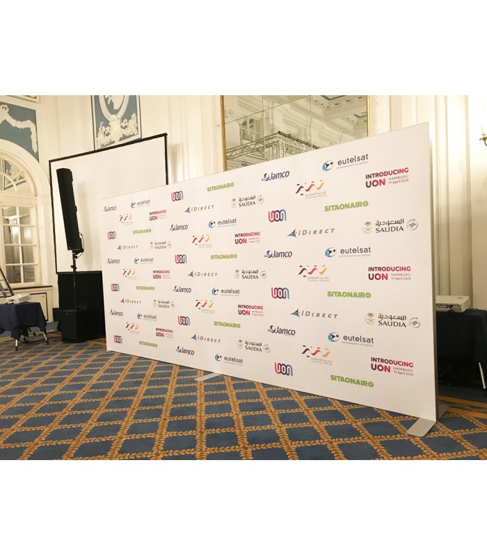 Diese gerade, einseitige Stellwand ist beliebig einsetzbar. Individuelle Formate möglich (ab 2 m²), HQ-Druck auf dehnbarem Blockstoff (B1 zertifiziert) mit Gummilippe. Dadurch besonders einfache Handhabung. Printwechsel einfach und kostengünstig.
